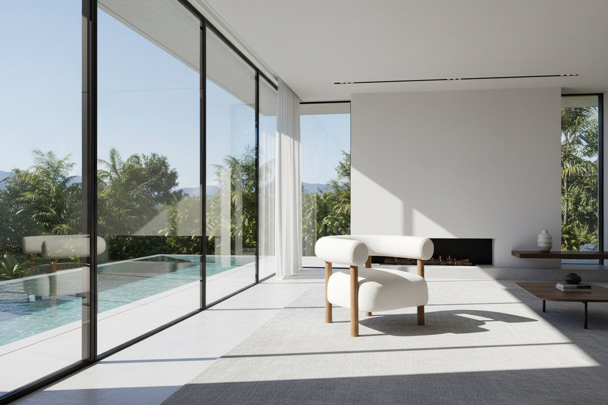 White lambskin upholstered armchair